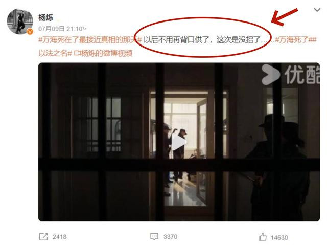 而演员杨烁也在线回应了大结局,表示:不用再背口供了,没招了。